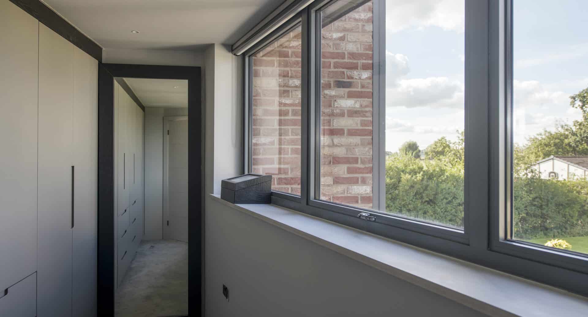 Fixed picture windows, bespoke shaped windows, and our slender Scenic casement windows have also been installed throughout. Full height glazing has been utilised right through the property. The front elevation benefits from large format windows, while the rear elevation is dominated by glass with several shaped windows acting as feature products whilst perfectly complementing the contemporary house design.