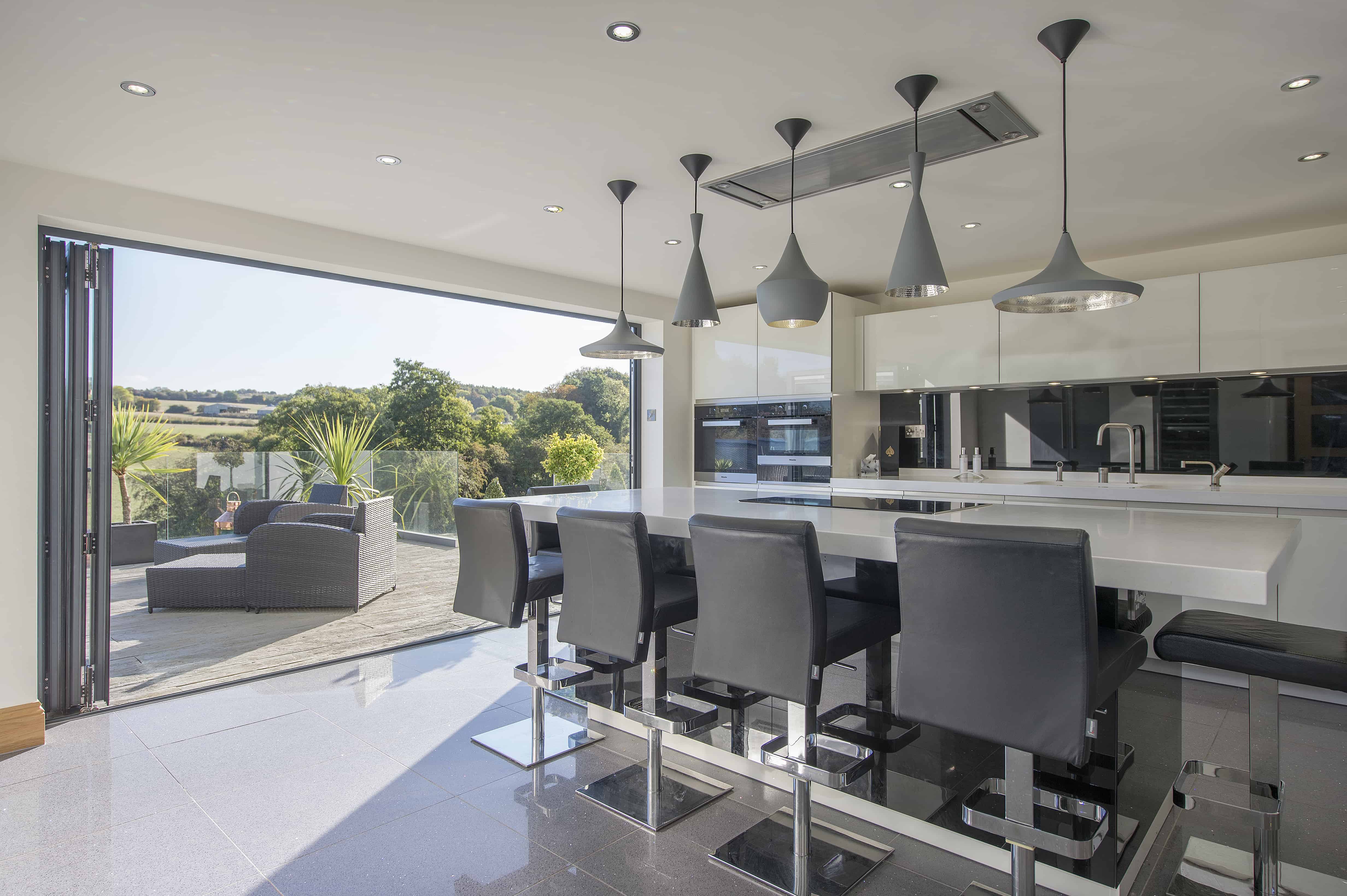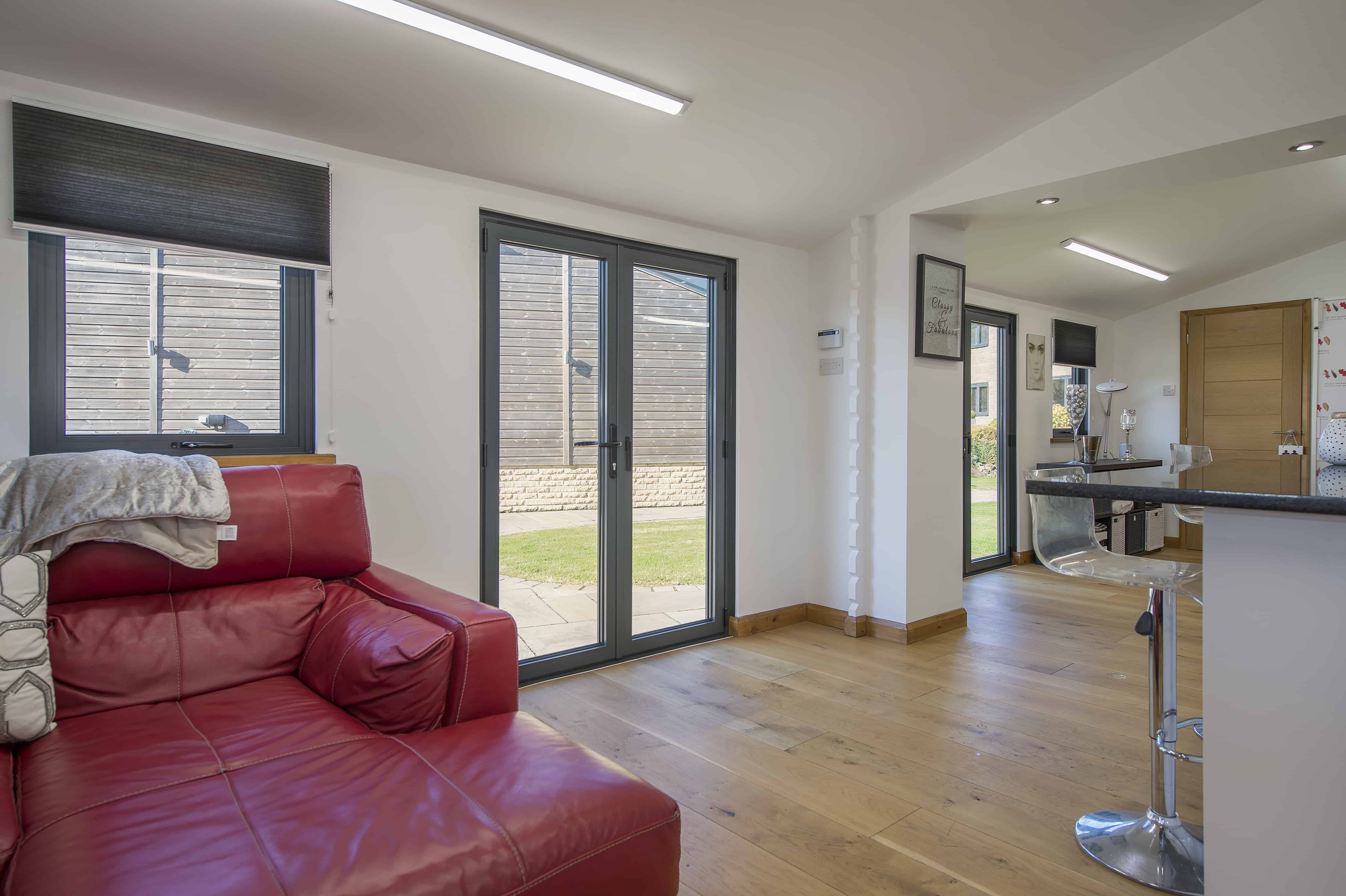 We worked with the homeowners of this property for three years over three separate phases. This three-stage transformation began in 2015 when we installed a three panel XP View bi-folding door complete with solar powered blinds into the new, modern kitchen. The homeowners then wanted to update the rest of this traditional farm house by installing our aluminium windows and door products throughout. Finally, the impressive summerhouse was built, which again benefits from our casement windows and French doors to create a light-filled, multi-functional space.