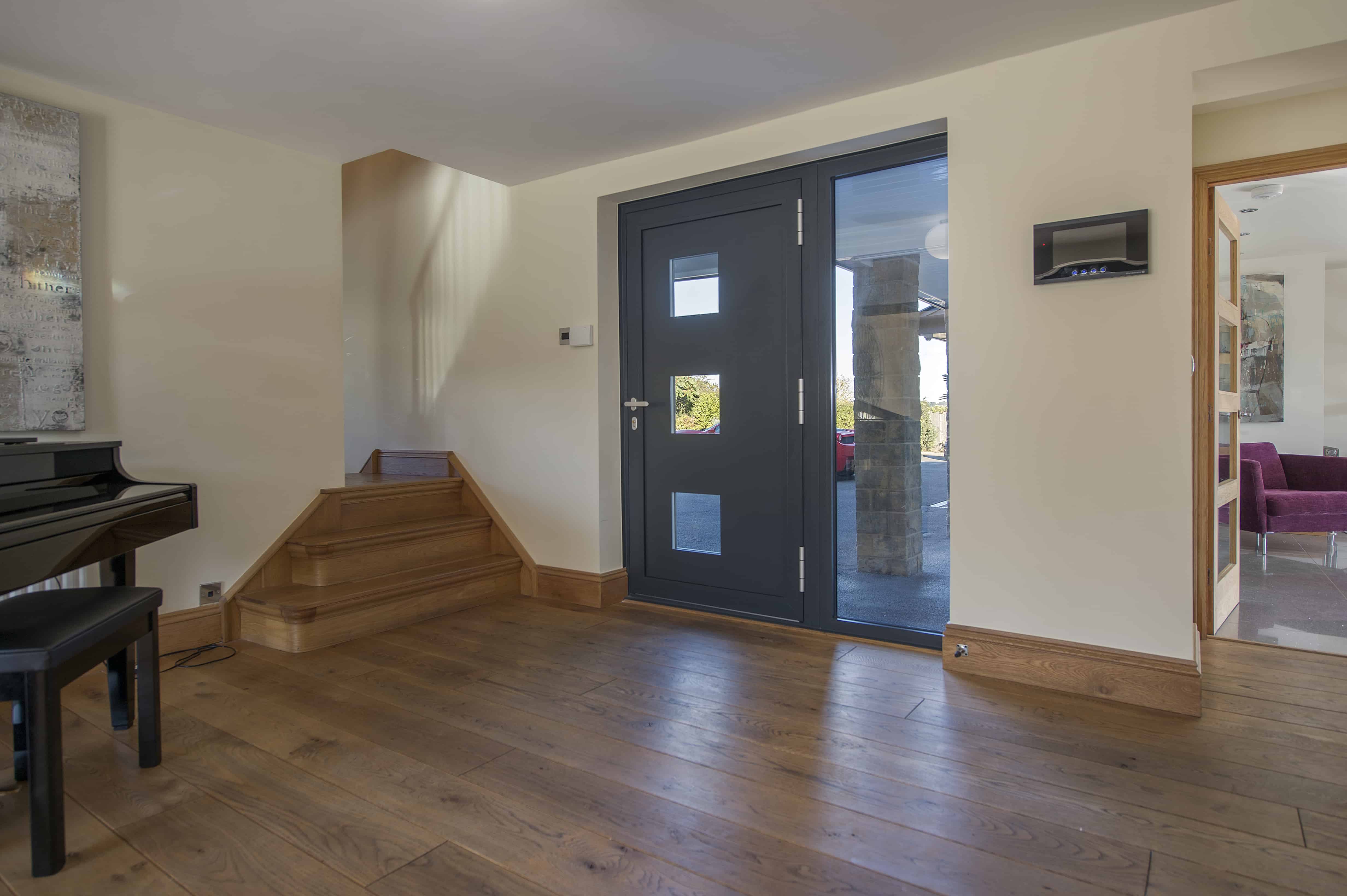 • 1765mm x 2115 – Caverro aluminium front door with glazed side light.