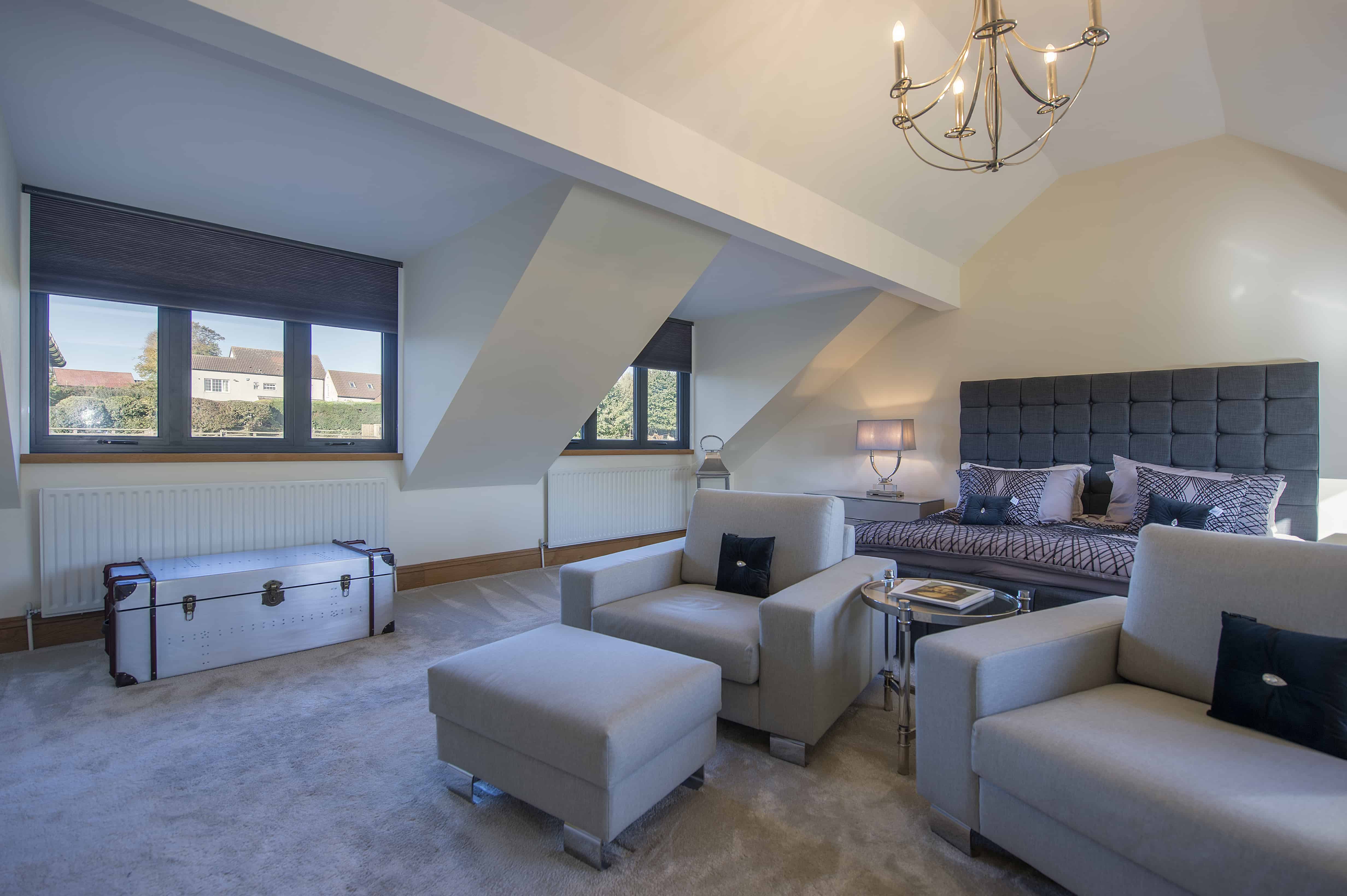 Finished to the highest standard the kitchen flawlessly leads out to a raised decking area sat amongst the sprawling country side. The flexibility gained from bi-folding doors is used in the living area and a TV room with both seamlessly connecting to the landscaped garden outside. The summerhouse sits at the foot of the garden containing an open plan kitchen and living area as well as a gym, all of which basks in natural light thanks to the large amount of glazing within it.