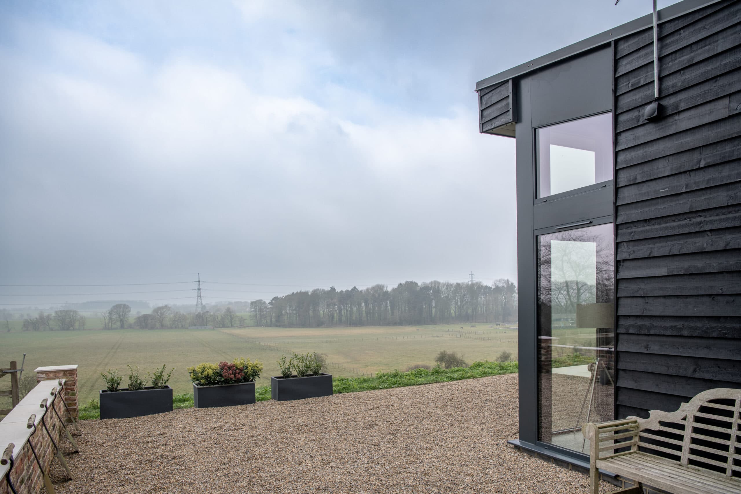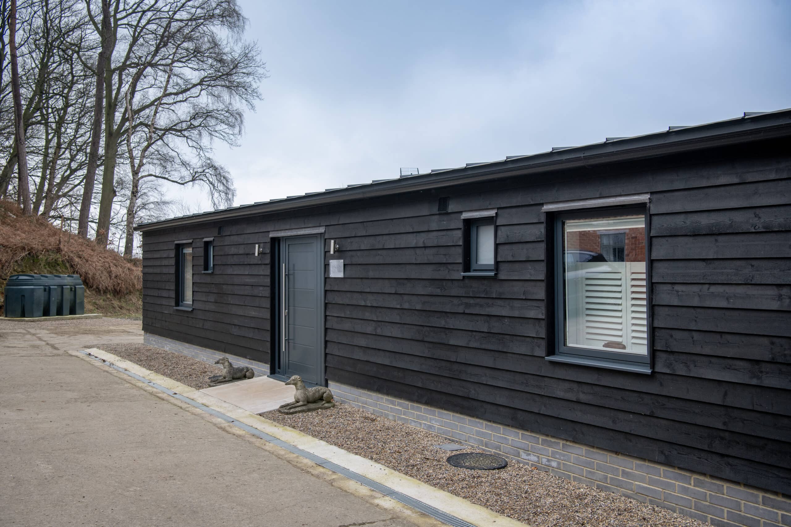 The most striking of which includes the vertical natural cladding on the main house, versus the horizontal black painted cladding on the outhouse and the traditional gable zinc roof on the main house, whereas the outhouse has a pitched roof and not forgetting sliding doors throughout the main house and bi-folding doors and picture windows utilised within the outhouse.