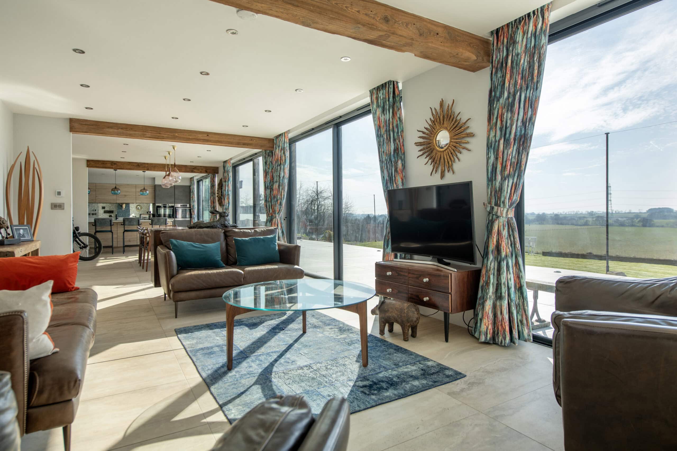 The rear elevation is unique in that it consists of eight twin track sliding patio doors. The symmetry of the doors and equal sightlines lining through looks dramatic and modern, exactly how the homeowners intended but it is internally where the benefits are really felt.