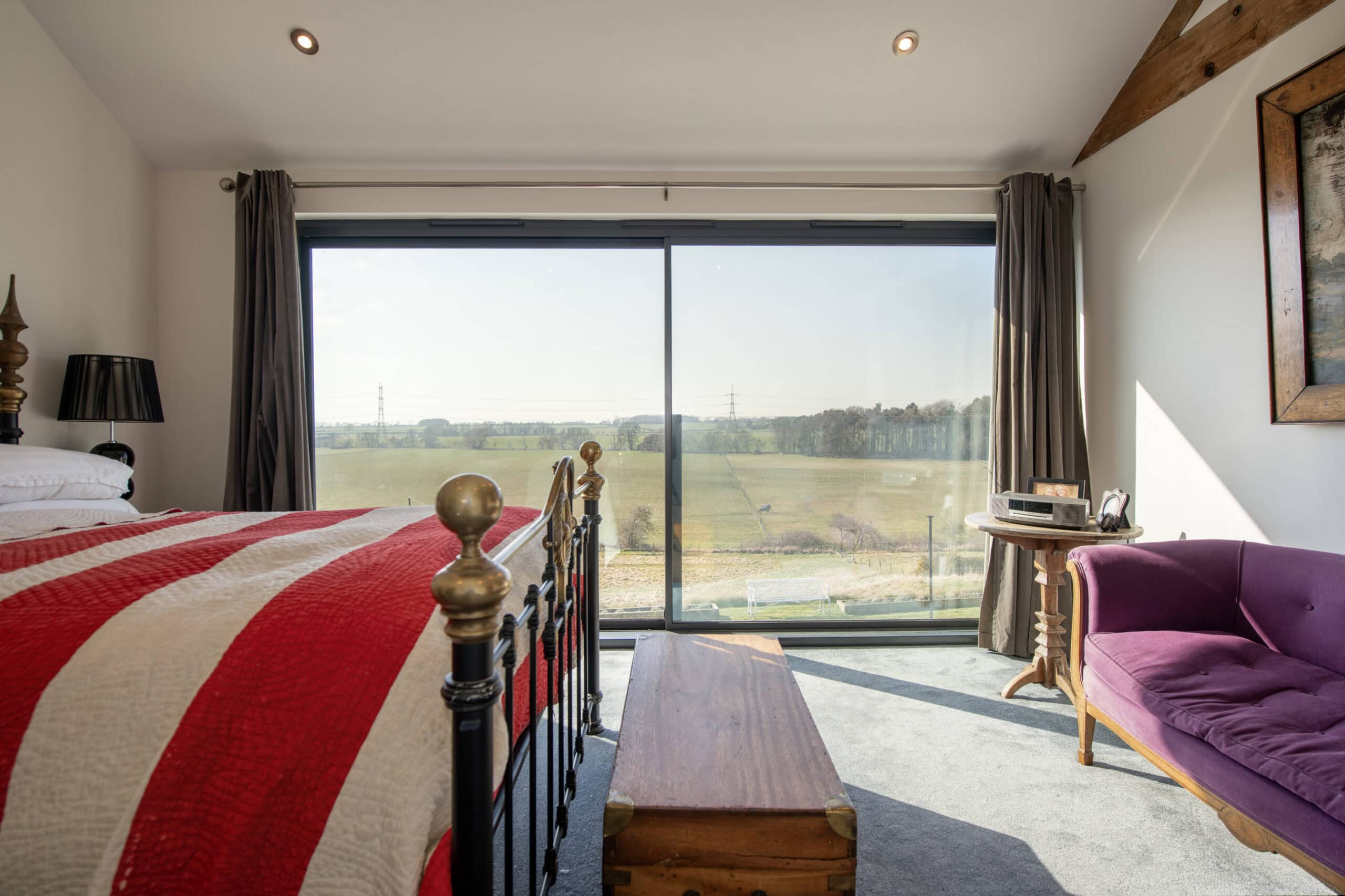 With views this stunning and no concerns about privacy, why not replicate the downstairs design and utilise sliding doors upstairs also? An external Juliet balcony ensures that each room is safe when the doors are open and the incorporation of three large trickle vents above each door will ensure that there is adequate ventilation in the room even through the night when the occupants are sleeping. The results match the downstairs space, with a slender 25mm separating two large panes of glass to fully take advantage the gorgeous views.