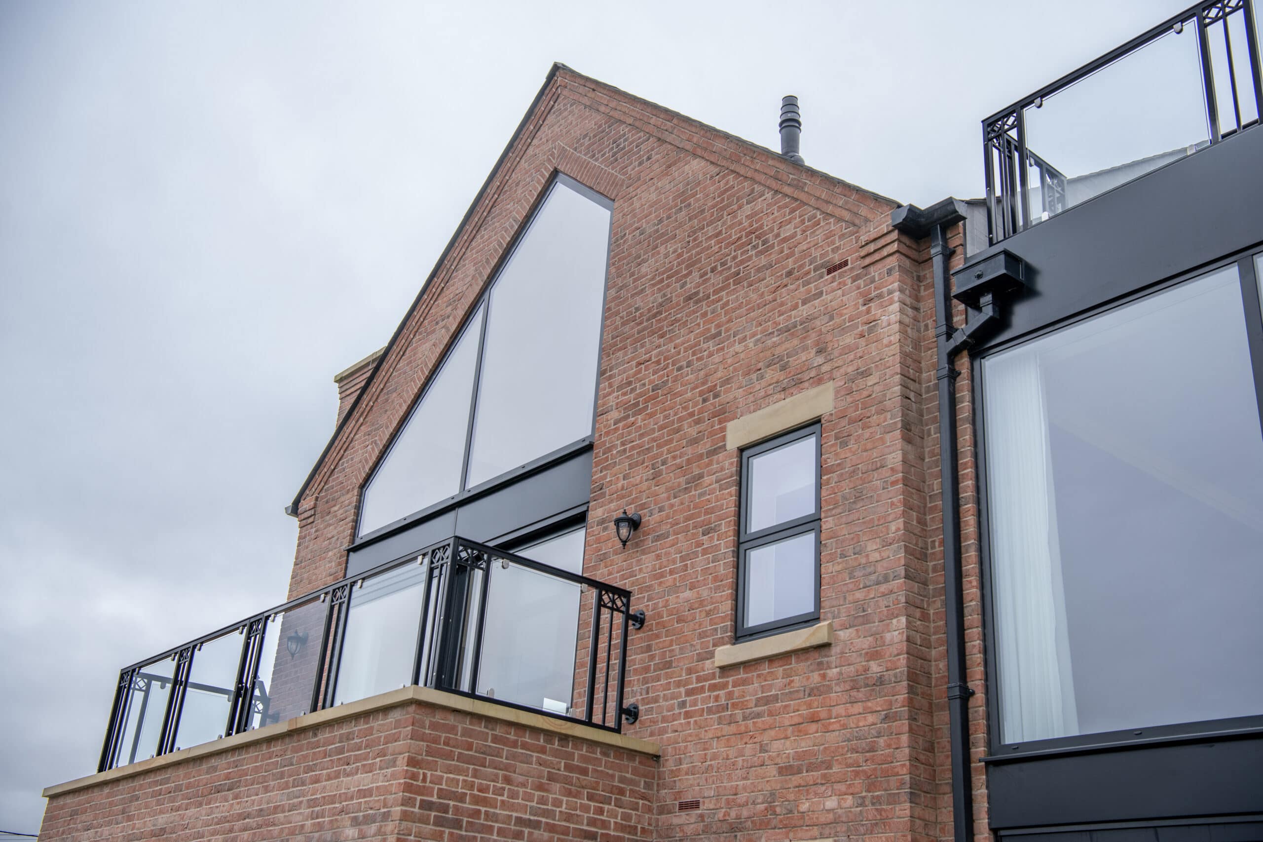 Floor to ceiling glass is a key characteristic of this stunning property and a combination of our fixed picture windows and shaped windows have blended harmoniously with the rest of our products to create this distinctive home.