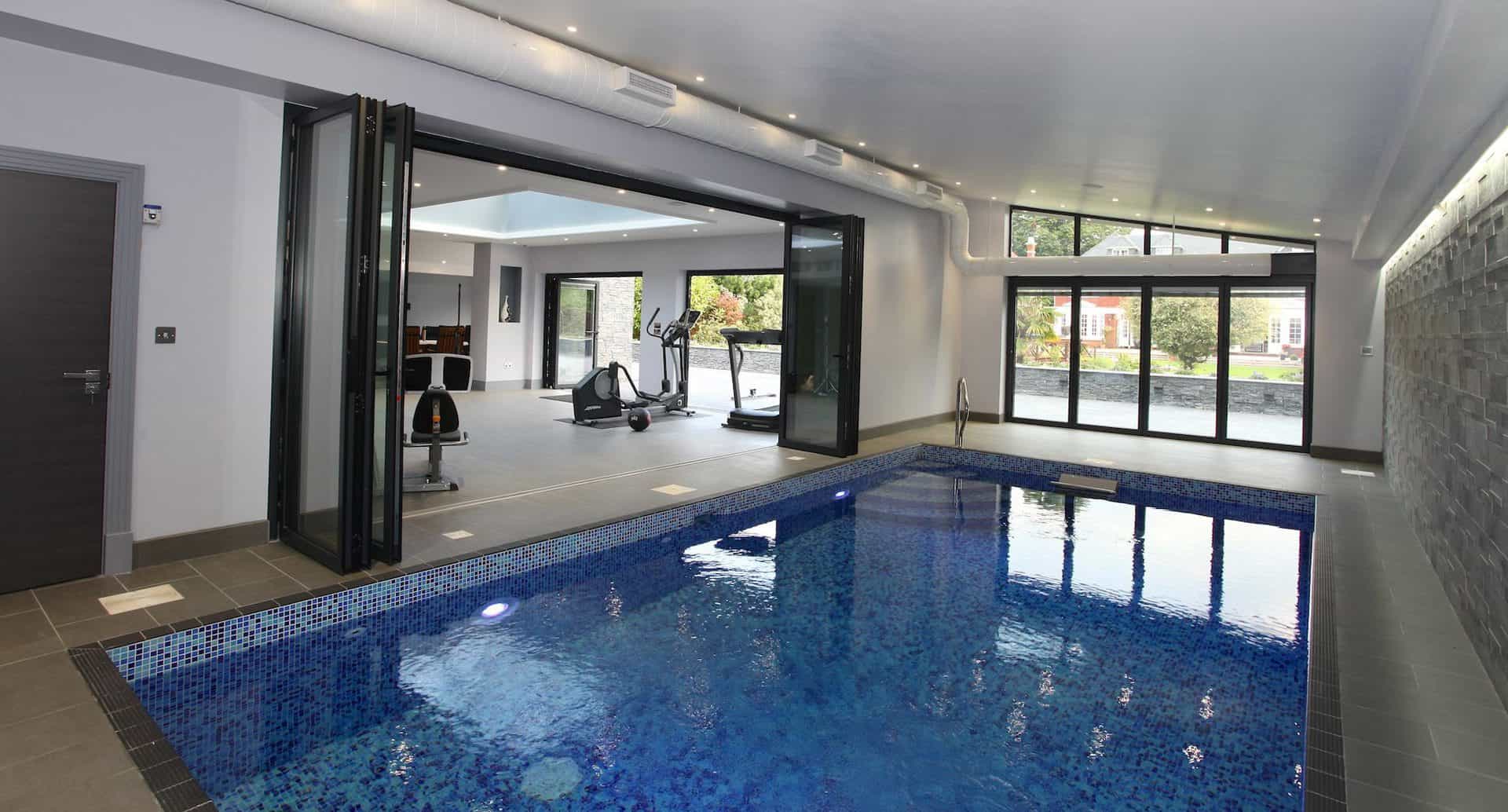 The core product throughout this installation is our premium folding door the XP View. In total, five bi-folding door sets have been manufactured for this home, the largest to close off/open up the swimming pool area, as well as four additional sets which span the full width of the rear elevation.