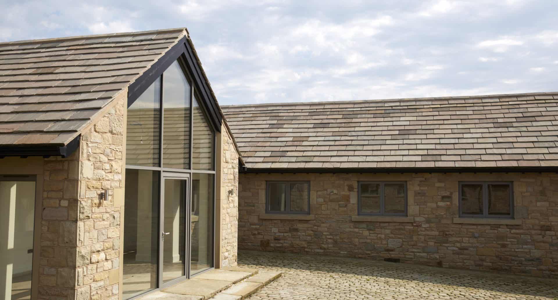 This development is a beautiful contrast of traditional stone-built farm houses blended with our contemporary aluminium window, door and glazed roofing products. The original Mullion windows have been restored but now benefit from our bespoke windows, which immediately modernise the properties.