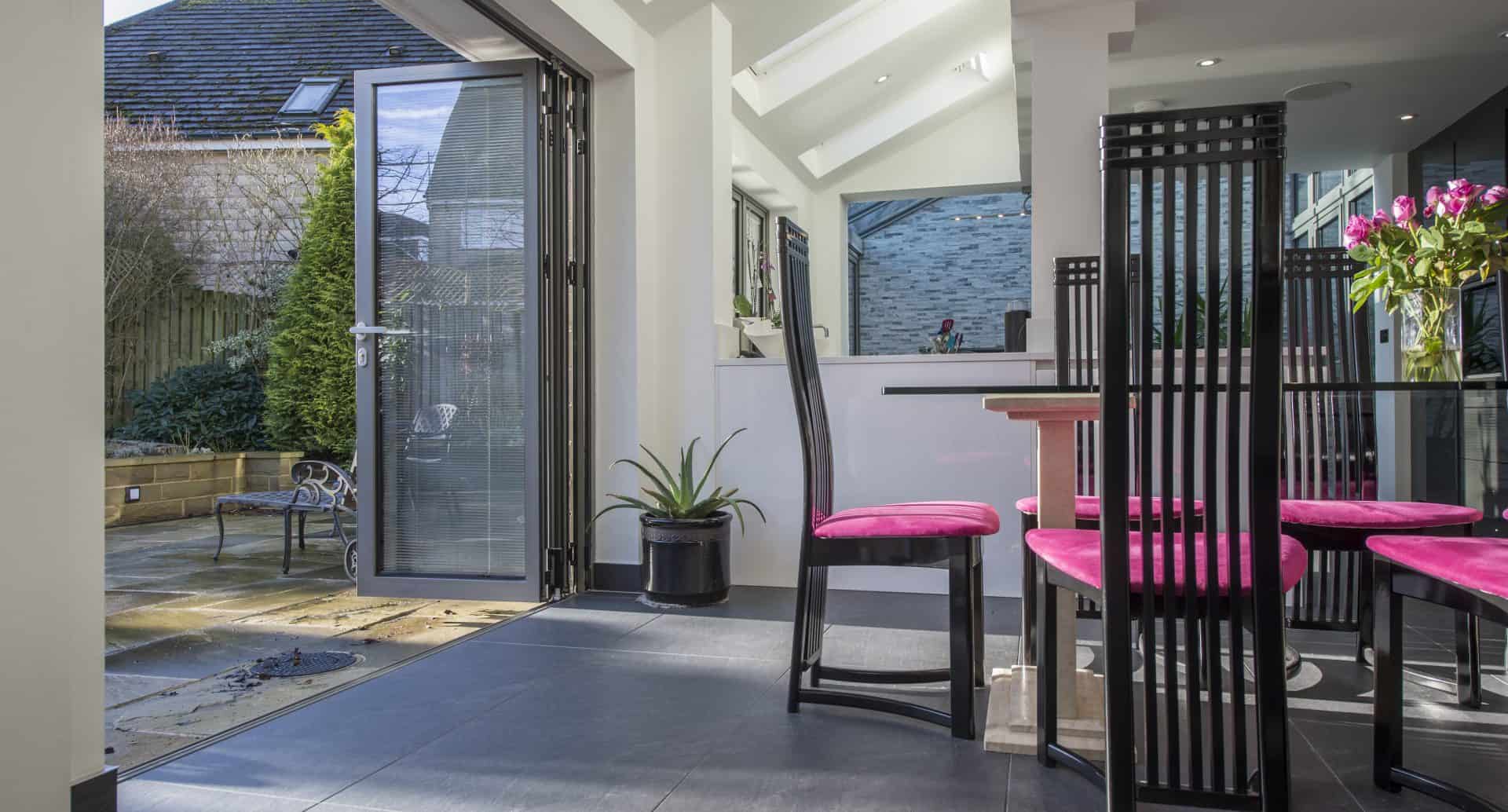 The single glazed door within the glazed atrium is a very unique structure to place within a home. The glazed atrium on its own is a stunning architectural feature, that bathes the property in natural light. The door creates a second entrance to the home, which once inside leads straight through to the open-plan kitchen and living area or out to the garage. It is effectively a glass wall so will help keep both the second entrance and rear kitchen/living area warm. Using glass instead of a traditional stud wall has prevented both spaces from being closed off. Instead they’re very expansive, which, along with the bi-folding doors and casement windows, will make the space feel bigger and lighter.