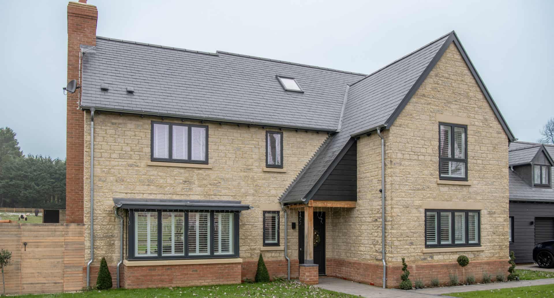 This new build home looks quite different from the front when compared to the back but both elevations are equally impressive. The combination of stone, timber & our aluminium doors and windows has created an impressive first plot within this development. Internally it has been finished to the highest standard with a mix of modern and traditional materials to create a light filled & contemporary home with many of the rooms benefiting from full height glazing coupled with some of the slimmest frames available on the market.