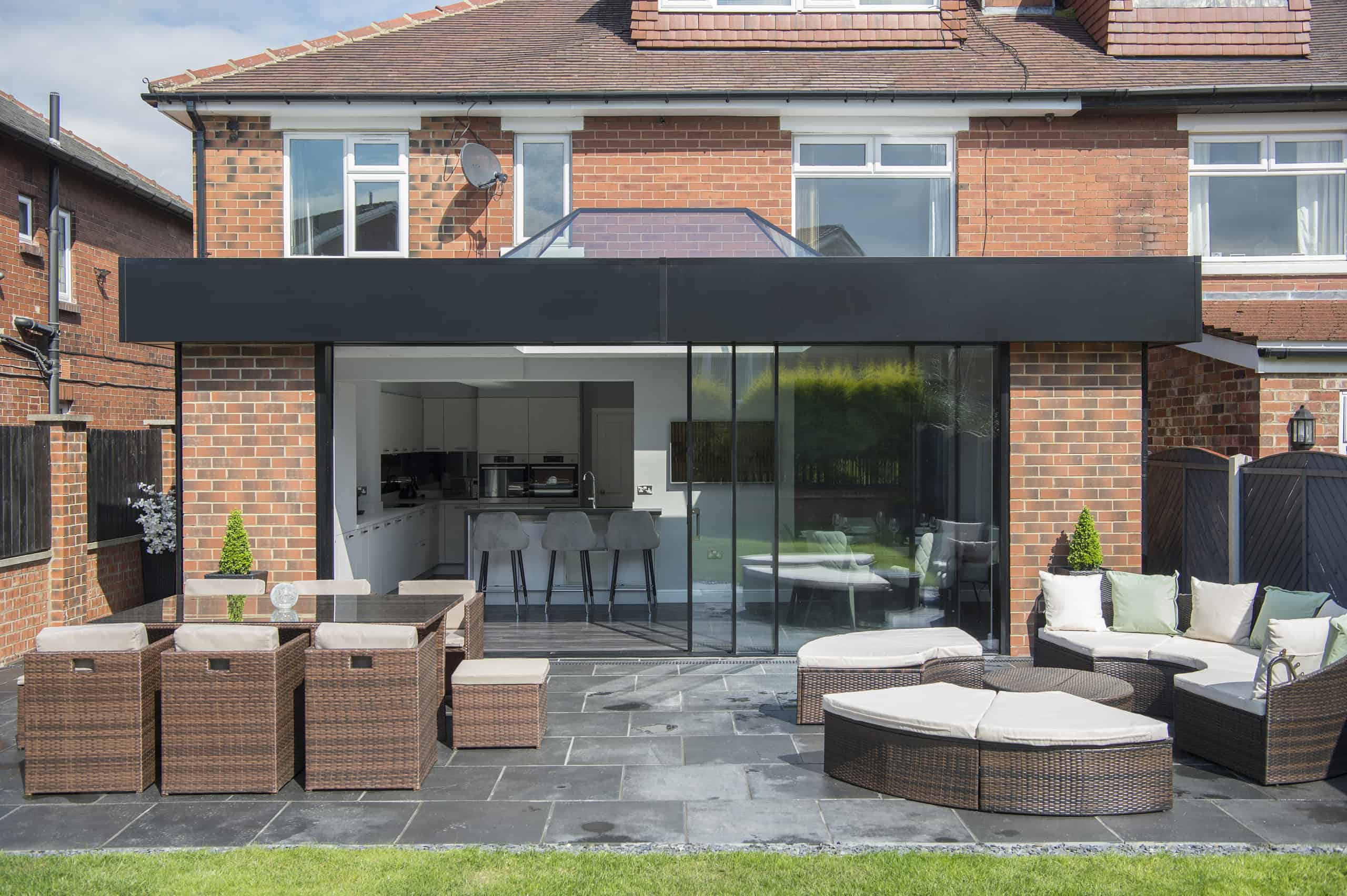 These homeowners in South West London were weighing up the decision between moving or extending. Deciding against the upheaval of moving from their family home they decided to increase their space by adding a kitchen extension to their property. The key requirement for the additional space was minimal frames and maximum light so they visited our Weybridge showroom to look at our slimmest sliding doors and the options available to incorporate glazing into a flat roof.
