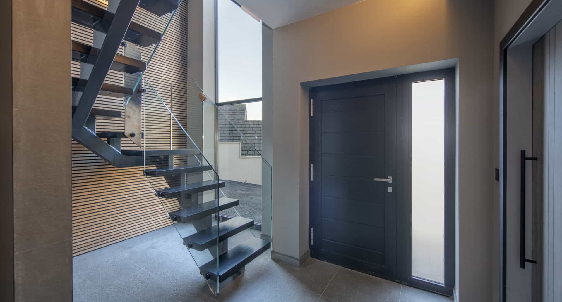 Our Premium glass entrance doors can really set the tone for guests entering your home. Their strong and solid design makes them the ideal product to create a grand entrance, and when combined with our sidelights, top lights, or curtain-walling options, they can create a glazed atrium that looks stunning – both inside and outside of the property.